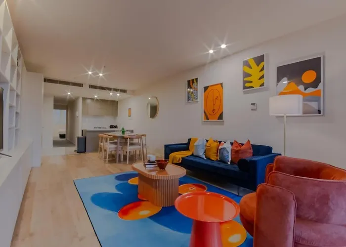 Tijdens een verblijf in Azul Lane - Double Story Apt - 3B2B & Free Parking Melbourne kunnen gasten zich ontspannen op een patio op 25 minuten wandelafstand van de Koninklijke Botanische Tuinen van Melbourne. De beschikbaarheid van een overdekt zwembad zorgt voor een meer ontspannen verblijf.